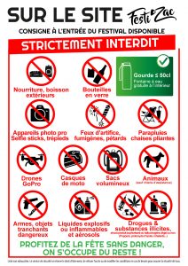 Liste non exhaustive. La sécurité se réserve le droit d’intervenir, de refuser l’accès ou de modifier les conditions en cas de besoin pour assurer la sécurité de tous.