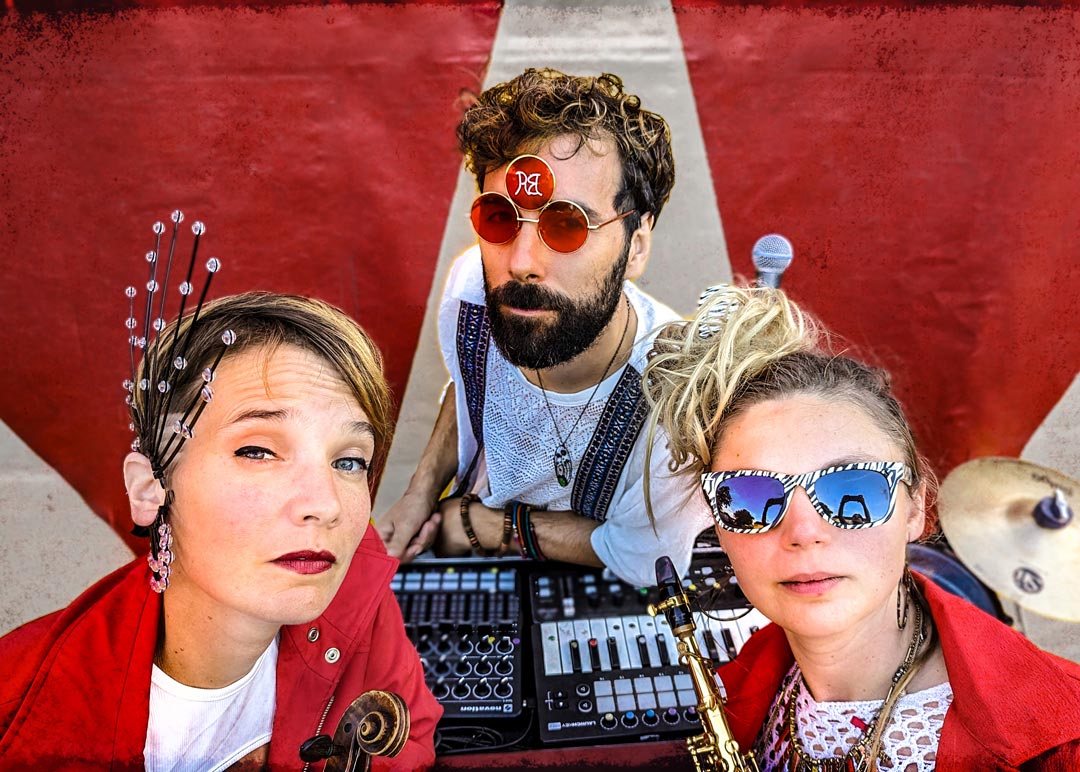 Le trio mêle chants en anglais ou espagnol, instruments acoustiques (violon, derbouka, saxophone, baby sitar) et productions électros remixées en live, pour une musique entre dub, cumbia, et musiques de l’Est.